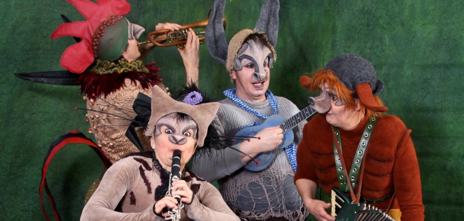 Bunt, fröhlich und mit viel Musik hat das „theater mimikri“ den Klassiker der Brüder Grimm inszeniert. Hier spielt tatsächlich jedes Tier sein eigenes Instrument. In konfliktreichen turbulenten Proben raufen sie sich zum einem unschlagbaren Notorchester zusammen. Gemeinsam gelingt ihnen eine „tierisch gute“ Musik. Und dann machen sie sich auf den Weg nach Bremen. Der Weg führt sie durch einen dunklen Wald. Doch das Haus, das dort leuchtet, ist keine gemütliche Herberge: Es ist das Haus der wilden Räuber.
